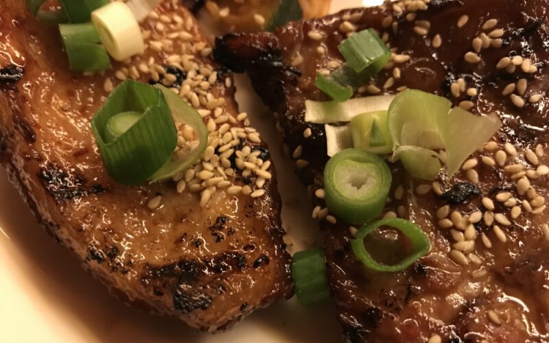 Zutaten: 1 kg dünne Scheiben vom Schweinebauch (ohne Schwarte) 150 ml Sojasauce 5 EL Sesamöl 3 EL Reisweinessig 2 EL