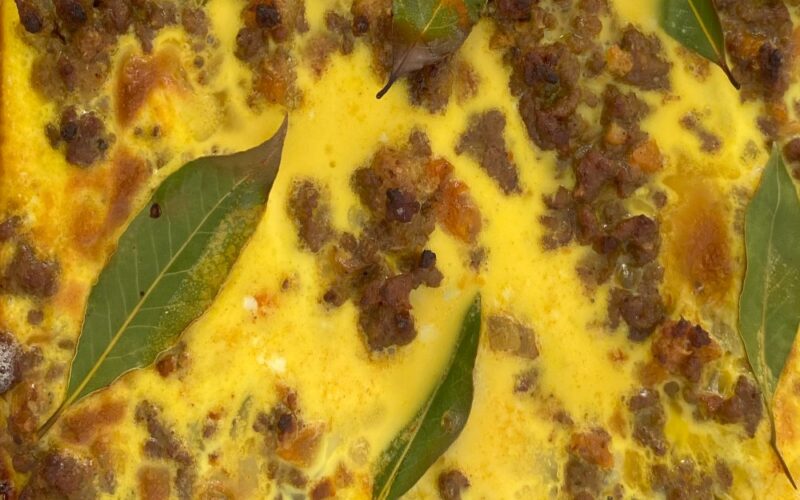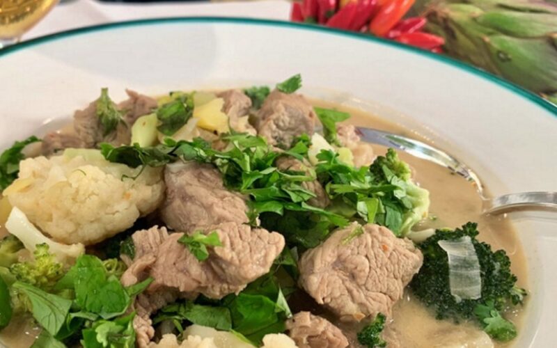 Zutaten für ca. 6 Personen: 1,2 bis 1,5 kg Kalbfleisch (z.B. Schulter oder Bug) 1-2 Zwiebel 3-4 Knoblauchzehen 1-2 Chilischoten