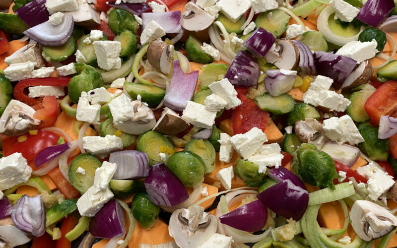 Zutaten: Für das Gemüsebett auf dem Backblech (ca. 4 Personen, 2 Bleche) Fürden Dipp Zubereitung: Das Huhn in große Stücke teilen (ca.