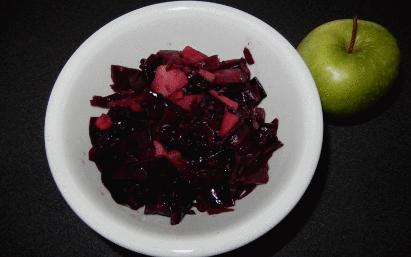 Zutaten: Für 8 Personen 1,5-2 kg Rotkohl 2 große Zwiebeln 2EL Gänseschmalz 1 EL Zucker Salz, Pfeffer 2 EL Johannisbeergelee