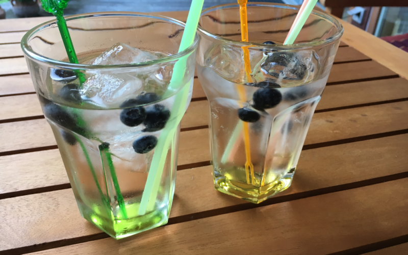 5 cl Lillet Blanc 10 cl Schweppes Russian Wild Berry 5 Club Canario (Zuckerrohrschnaps) frische Beeren Eiswürfel